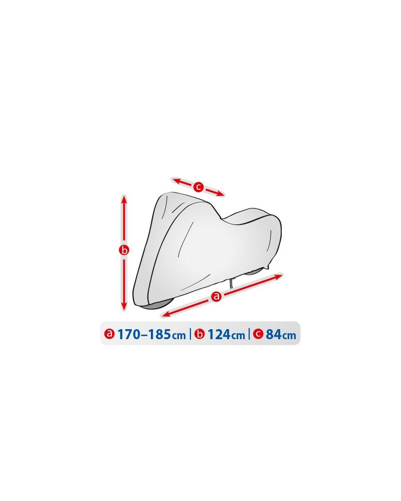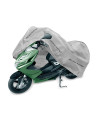 Une housse de scooter. La housse offre la protection du scooter entier, avec sa partie inférieure, contre les effets destructifs du milieu. Elle résiste à l'action des rayons UV. Fixée à l'aide de la corde élastique autour du scooter entier, la housse protège même en cas de vent élevé. Grâce à trois versions de dimensions différentes vous trouverez toujours une housse qui sera bien ajustée à votre scooter. La garantie de 25 mois dont sont couvertes les housses vous donne l'assurance d'avoir choisi un article de haute qualité.