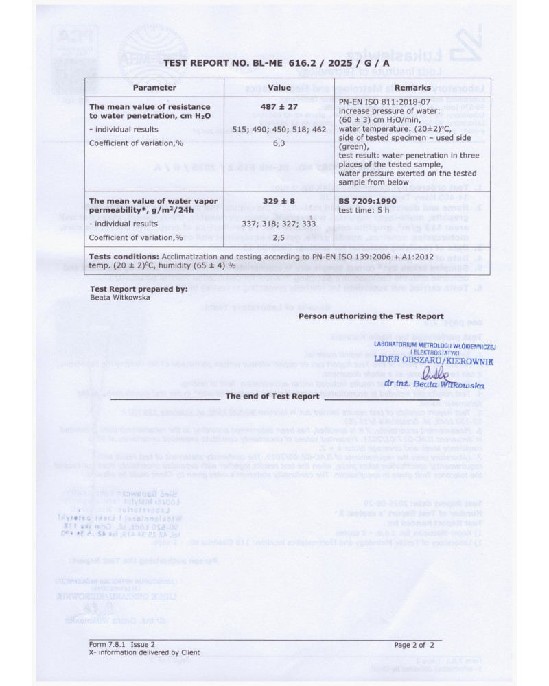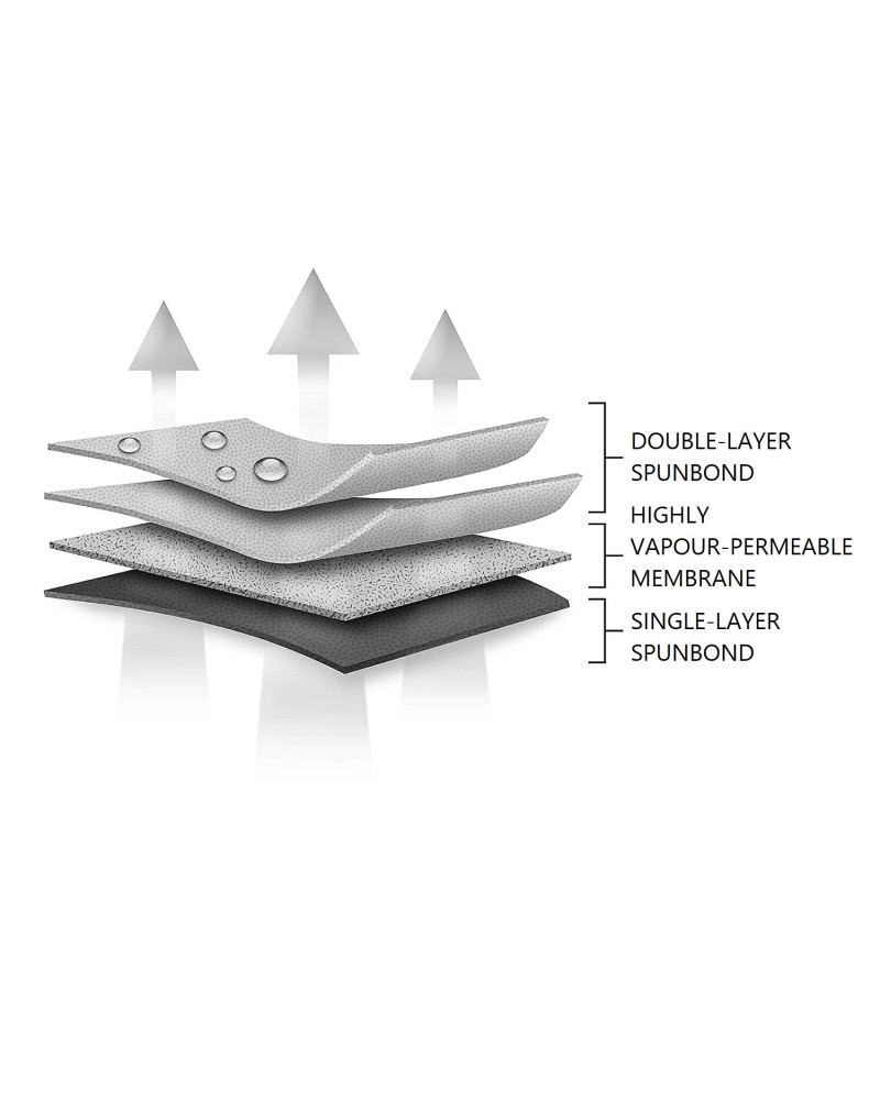 -fait d'un matériau hydrofuge et perméable à la vapeur qui assure l'évaporation de l'humidité s'accumulant à l'intérieur