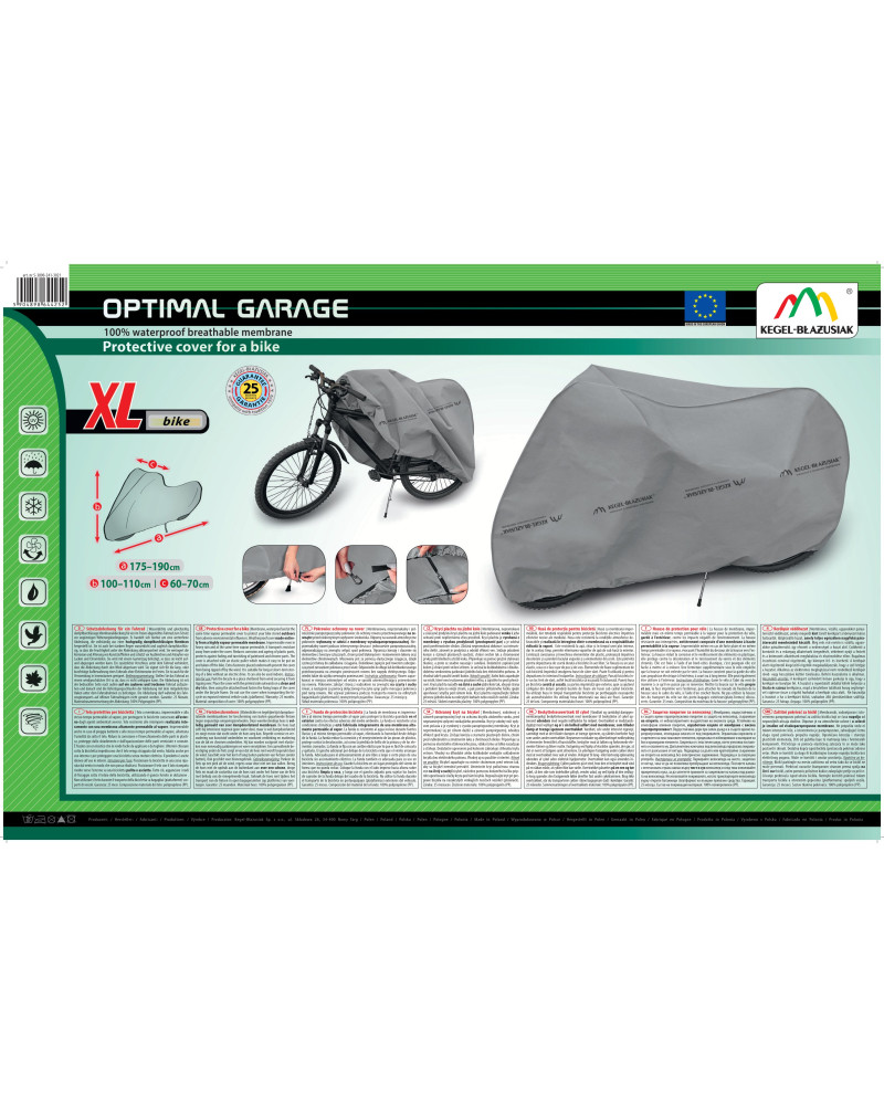 Garer le vélo à l'abri du vent de manière à ce qu'il ne puisse pas se renverser. Mettre la housse sur le vélo propre et sec, la face imprimée vers l'extérieur, puis attacher les noeuds de fixation de la housse sous le cadre du vélo, à l'aide d'un crochet fourni. Ne pas utiliser la housse lors du transport du vélo sur des porte-bagages extérieurs(plate-formes) découverts.
