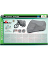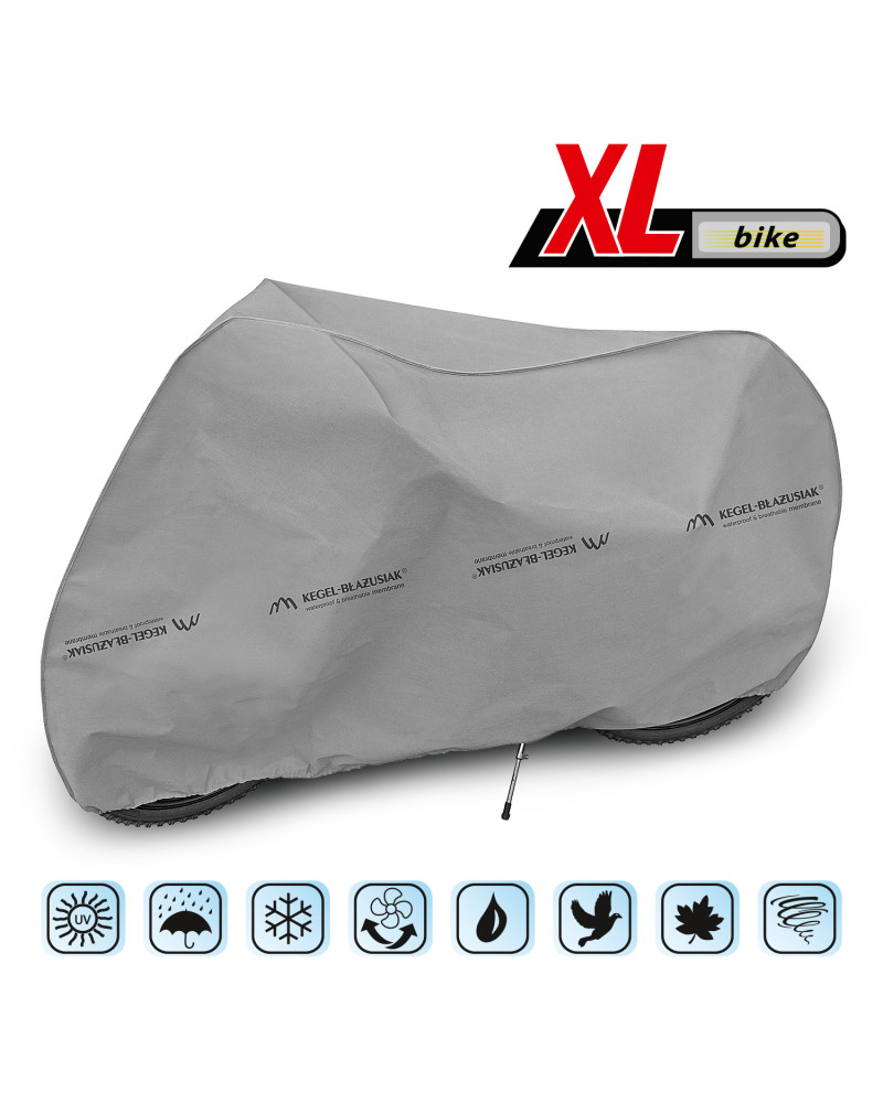 La housse de membrane, imperméable mais en même temps perméable à la vapeur pour la protection du vélo, gardé à l’extérieur, contre les impacts négatifs de l'environnement. La housse résistante aux intempéries, entièrement composée d'une membrane à haute perméabilité à la vapeur. Imperméable même en cas de forte pluie et en même temps perméable à la vapeur, évacuant l'humidité du dessous de la housse vers l'extérieur. La housse réduit la corrosion et le vieillissement des éléments en plastique, elle protège contre la décoloration et le ternissement du vernis et des éléments chromés. Elle est fixée à l’aide d'un bord-côtes élastique, c’est pourquoi elle est facile à mettre et à enlever. Une fermeture supplémentaire sous le vélo empêche que la housse ne soit enlevée par le vent. La housse convient pour la garde du vélo sans propulsion électrique à l'extérieur, à court ou à long terme. Elle peut également être utilisée à l'intérieur.