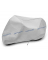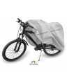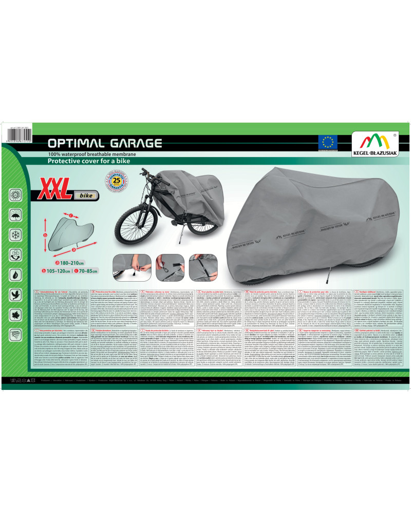 La housse de membrane, imperméable mais en même temps perméable à la vapeur pour la protection du vélo, gardé à l’extérieur, contre les impacts négatifs de l'environnement. La housse résistante aux intempéries, entièrement composée d'une membrane à haute perméabilité à la vapeur. Imperméable même en cas de forte pluie et en même temps perméable à la vapeur, évacuant l'humidité du dessous de la housse vers l'extérieur. La housse réduit la corrosion et le vieillissement des éléments en plastique, elle protège contre la décoloration et le ternissement du vernis et des éléments chromés. Elle est fixée à l’aide d'un bord-côtes élastique, c’est pourquoi elle est facile à mettre et à enlever. Une fermeture supplémentaire sous le vélo empêche que la housse ne soit enlevée par le vent. La housse convient pour la garde du vélo sans propulsion électrique à l'extérieur, à court ou à long terme. Elle peut également être utilisée à l'intérieur.