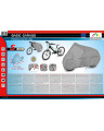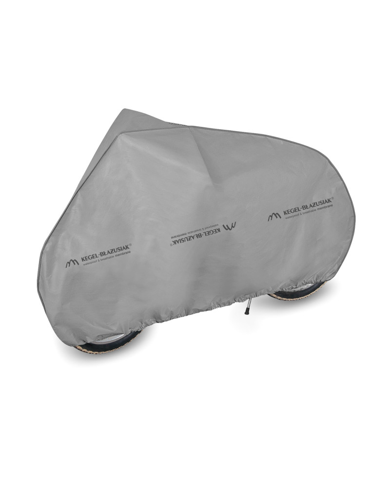 La housse de membrane, imperméable mais en même temps perméable à la vapeur pour la protection du vélo, gardé à l’extérieur, contre les impacts négatifs de l'environnement. La housse résistante aux intempéries, entièrement composée d'une membrane à haute perméabilité à la vapeur. Imperméable même en cas de forte pluie et en même temps perméable à la vapeur, évacuant l'humidité du dessous de la housse vers l'extérieur. La housse réduit la corrosion et le vieillissement des éléments en plastique, elle protège contre la décoloration et le ternissement du vernis et des éléments chromés. Elle est fixée à l’aide d'un bord-côtes élastique, c’est pourquoi elle est facile à mettre et à enlever. Une fermeture supplémentaire sous le vélo empêche que la housse ne soit enlevée par le vent. La housse convient pour la garde du vélo sans propulsion électrique à l'extérieur, à court ou à long terme. Elle peut également être utilisée à l'intérieur.