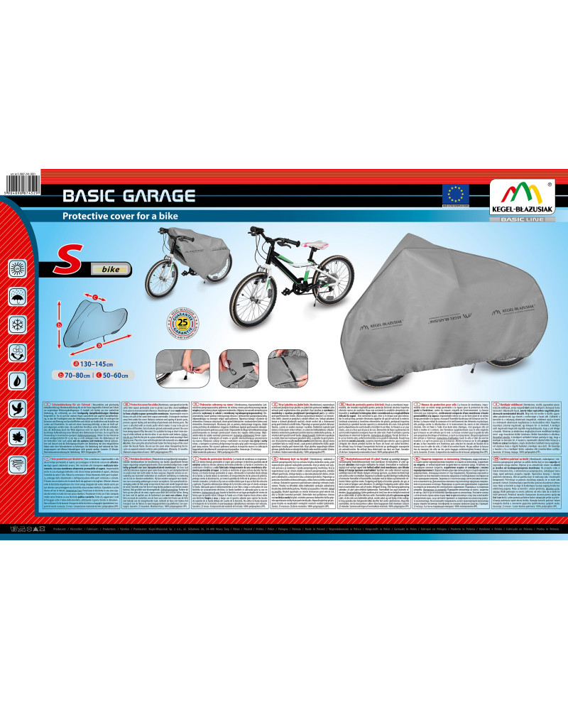 Garer le vélo à l'abri du vent de manière à ce qu'il ne puisse pas se renverser. Mettre la housse sur le vélo propre et sec, la face imprimée vers l'extérieur, puis attacher les noeuds de fixation de la housse sous le cadre du vélo, à l'aide d'un crochet fourni. Ne pas utiliser la housse lors du transport du vélo sur des porte-bagages extérieurs(plate-formes) découverts.