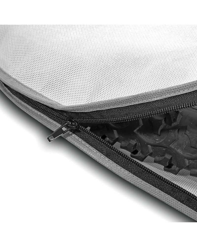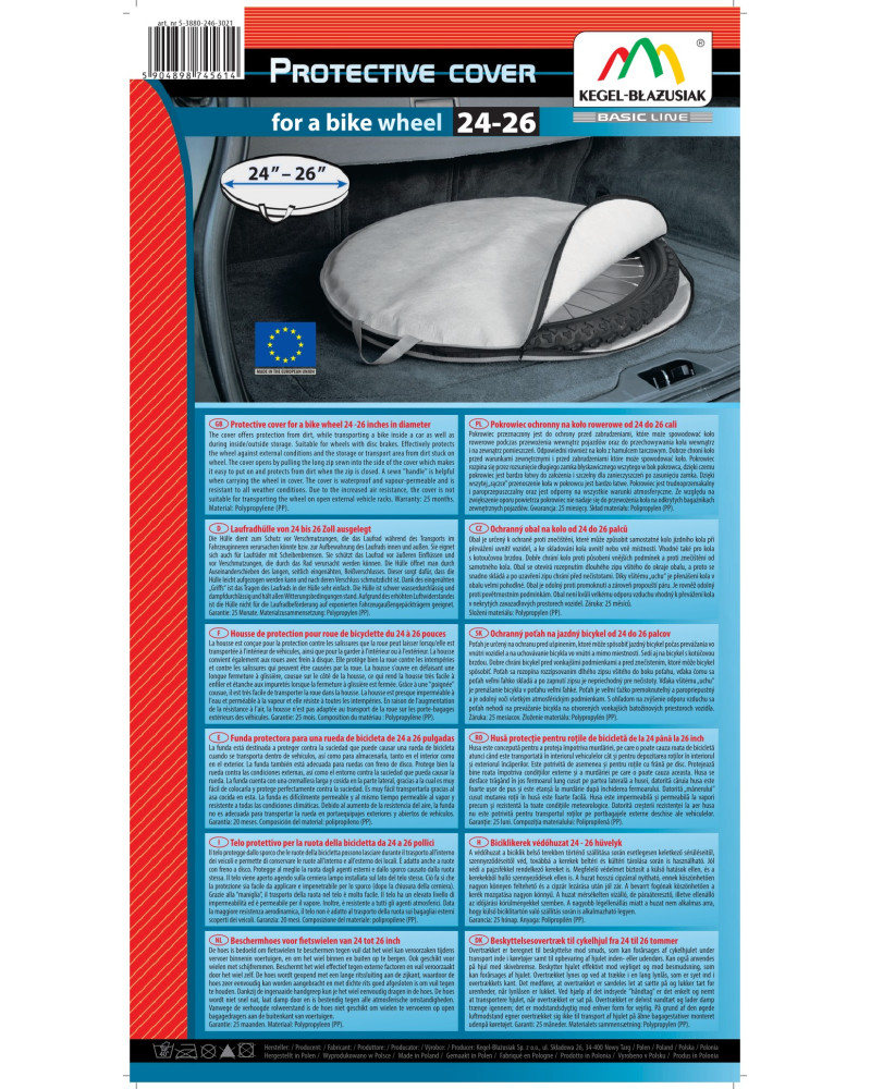 La housse est conçue pour la protection contre les salissures que la roue peut laisser lorsqu'elle est transportée à l'intérieur de véhicules, ainsi que pour la garder à l'intérieur ou à l'extérieur. La housse convient également aux roues avec frein à disque. Elle protège bien la roue contre les intempéries et contre les salissures qui peuvent être causées par la roue. La housse s'ouvre en défaisant une longue fermeture à glissière, cousue sur le côté de la housse, ce qui rend la housse très facile à enfiler et étanche aux impuretés lorsque la fermeture à glissière est fermée. Grâce à une "poignée" cousue, il est très facile de transporter la roue dans la housse. La housse est presque imperméable à l'eau et perméable à la vapeur et elle résiste à toutes les intempéries. En raison de l’augmentation de la résistance à l'air, la housse n'est pas adaptée au transport de la roue sur les porte-bagages extérieurs des véhicules. Garantie: 25 mois