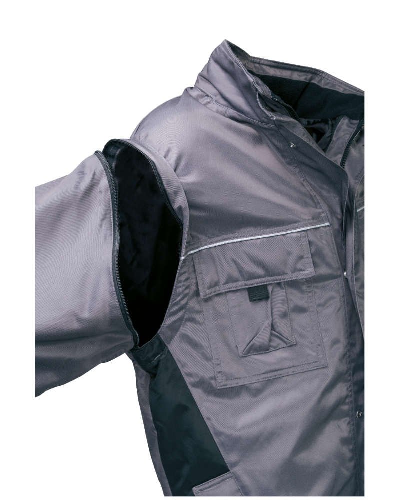 • Manches avec manchette élastique, amovibles avec fermeture éclair, élément réfléchissant derrière.