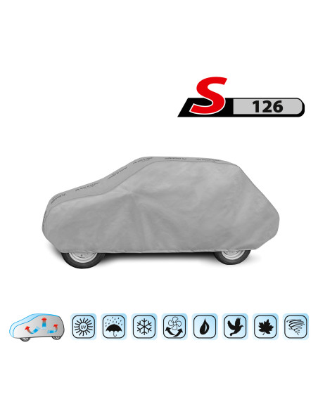 Le matériau textile de la bâche conviendra aussi bien à une voiture légèrement plus petite qu'à une voiture plus grande, de forme et de dimensions similaires, sans dépasser la circonférence indiquée ci-dessus.
