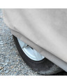 Le dessus de la bâche est constitué de quatre couches de matériau épais, solide et durable. Il ne se mouille pas, tout en évacuant l'humidité du dessous de la housse. Le SPUNBOND lisse à l'intérieur ne raye pas le véhicule.
