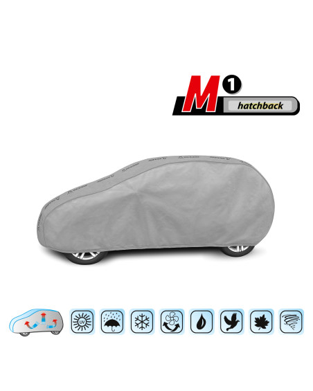 Le matériau textile de la bâche conviendra aussi bien à une voiture légèrement plus petite qu'à une voiture plus grande, de forme et de dimensions similaires, sans dépasser la circonférence indiquée ci-dessus.
