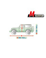 Le matériau textile de la bâche conviendra aussi bien à une voiture légèrement plus petite qu'à une voiture plus grande, de forme et de dimensions similaires, sans dépasser la circonférence indiquée ci-dessus.