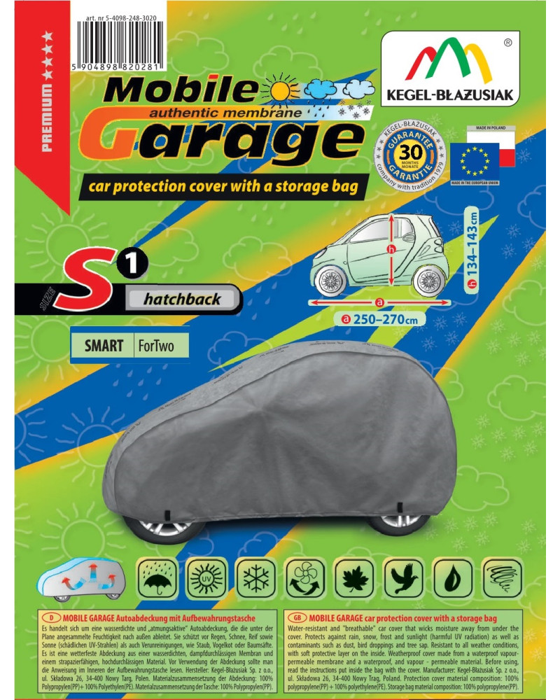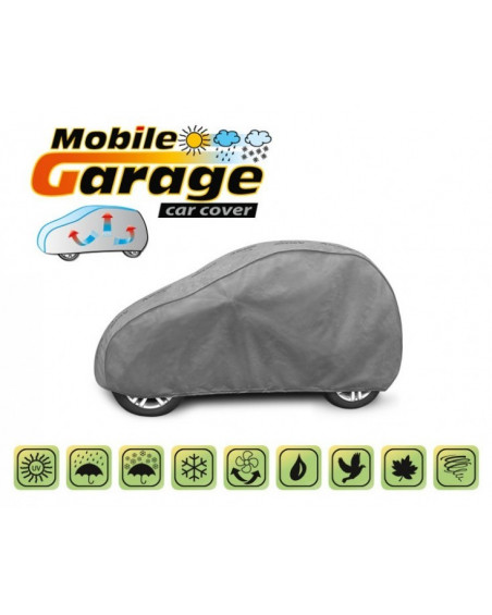 La housse de MOBILE GARAGE de haute qualité est un produit adapté aux besoins des conducteurs. Elle est composée de 4 couches de matériaux épais, solides et durables. La housse protège l'ensemble de la voiture contre les influences néfastes de l'environnement. La housse Mobile Garage est la protection idéale pour votre véhicule tout au long de l'année. Sa fonctionnalité peut être appréciée en toute saison. En hiver, il empêche l'accumulation de neige, de givre et de glace et résiste au gel ; en automne, il protège contre la pluie, le vent, les feuilles, la sève des arbres ; et en été et au printemps, il protège contre les rayons UV, la poussière et les fientes d'oiseaux. Les propriétés particulières du matériau multicouche garantissent que la housse ne se mouille pas, tout en permettant à la vapeur d'eau de s'échapper du dessous de la housse vers l'extérieur. Toute trace d'humidité qui s'accumule sous la bâche s'évapore rapidement, évitant ainsi la rouille de la voiture et la formation de moisissures. La housse convient à une utilisation immédiate ou à long terme. La housse peut être lavée à la main à 40 degrés.