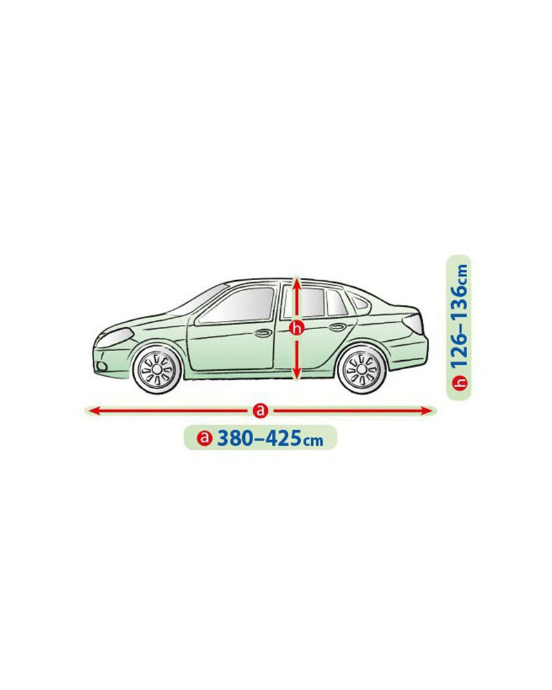 Le matériau textile de la bâche conviendra aussi bien à une voiture légèrement plus petite qu'à une voiture plus grande, de forme et de dimensions similaires, sans dépasser la circonférence indiquée ci-dessus.