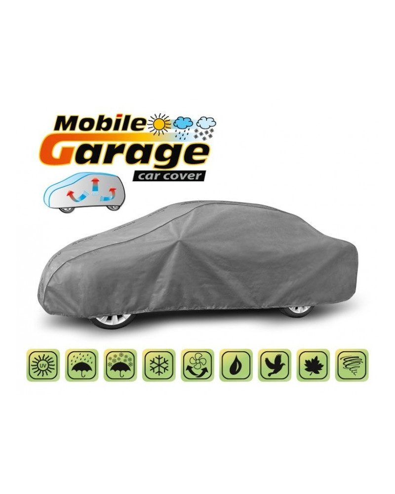 La housse de MOBILE GARAGE de haute qualité est un produit adapté aux besoins des conducteurs. Elle est composée de 4 couches de matériaux épais, solides et durables. La housse protège l'ensemble de la voiture contre les influences néfastes de l'environnement. La housse Mobile Garage est la protection idéale pour votre véhicule tout au long de l'année. Sa fonctionnalité peut être appréciée en toute saison. En hiver, il empêche l'accumulation de neige, de givre et de glace et résiste au gel ; en automne, il protège contre la pluie, le vent, les feuilles, la sève des arbres ; et en été et au printemps, il protège contre les rayons UV, la poussière et les fientes d'oiseaux. Les propriétés particulières du matériau multicouche garantissent que la housse ne se mouille pas, tout en permettant à la vapeur d'eau de s'échapper du dessous de la housse vers l'extérieur. Toute trace d'humidité qui s'accumule sous la bâche s'évapore rapidement, évitant ainsi la rouille de la voiture et la formation de moisissures. La housse convient à une utilisation immédiate ou à long terme. La housse peut être lavée à la main à 40 degrés.
