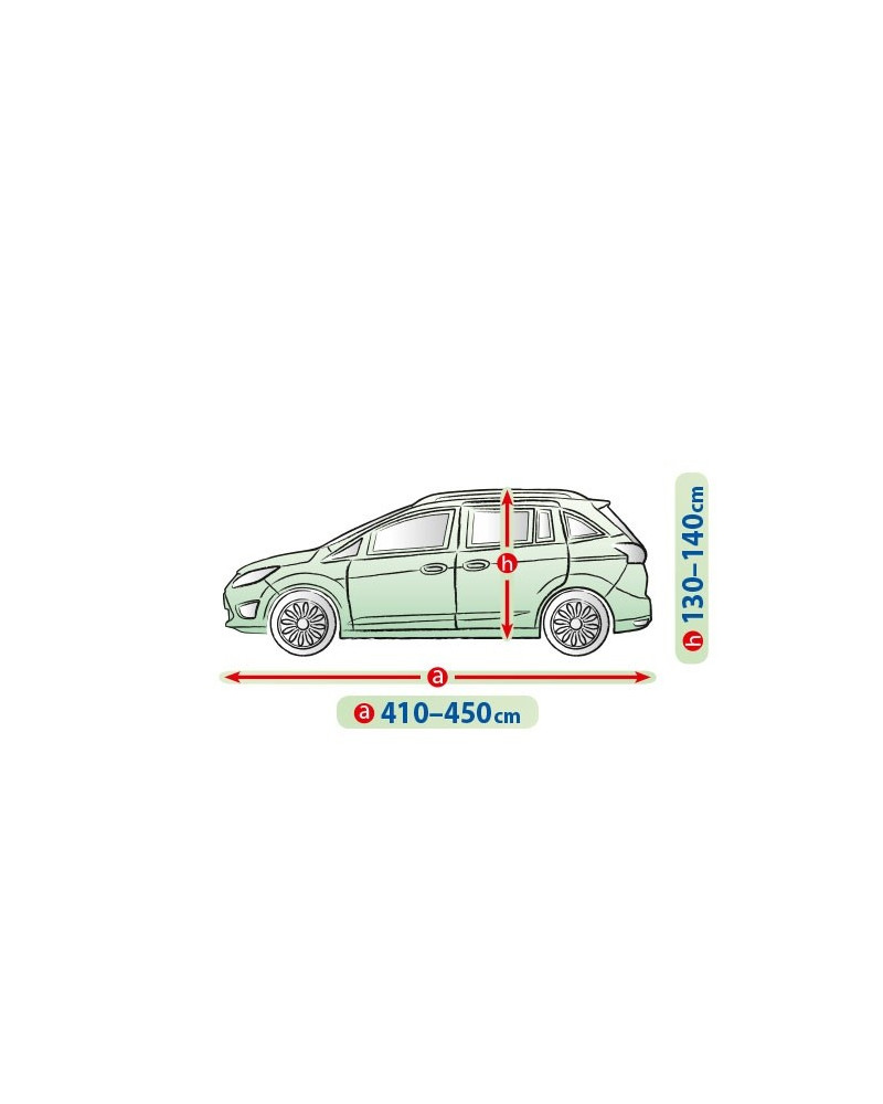 Le matériau textile de la bâche conviendra aussi bien à une voiture légèrement plus petite qu'à une voiture plus grande, de forme et de dimensions similaires, sans dépasser la circonférence indiquée ci-dessus.