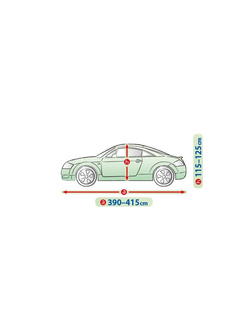 Le matériau textile de la bâche conviendra aussi bien à une voiture légèrement plus petite qu'à une voiture plus grande, de forme et de dimensions similaires, sans dépasser la circonférence indiquée ci-dessus.