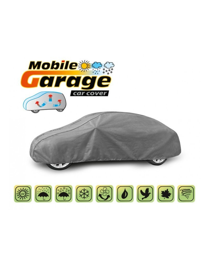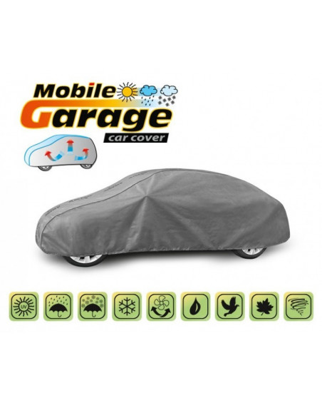 La housse de MOBILE GARAGE de haute qualité est un produit adapté aux besoins des conducteurs. Elle est composée de 4 couches de matériaux épais, solides et durables. La housse protège l'ensemble de la voiture contre les influences néfastes de l'environnement. La housse Mobile Garage est la protection idéale pour votre véhicule tout au long de l'année. Sa fonctionnalité peut être appréciée en toute saison. En hiver, il empêche l'accumulation de neige, de givre et de glace et résiste au gel ; en automne, il protège contre la pluie, le vent, les feuilles, la sève des arbres ; et en été et au printemps, il protège contre les rayons UV, la poussière et les fientes d'oiseaux. Les propriétés particulières du matériau multicouche garantissent que la housse ne se mouille pas, tout en permettant à la vapeur d'eau de s'échapper du dessous de la housse vers l'extérieur. Toute trace d'humidité qui s'accumule sous la bâche s'évapore rapidement, évitant ainsi la rouille de la voiture et la formation de moisissures. La housse convient à une utilisation immédiate ou à long terme. La housse peut être lavée à la main à 40 degrés.