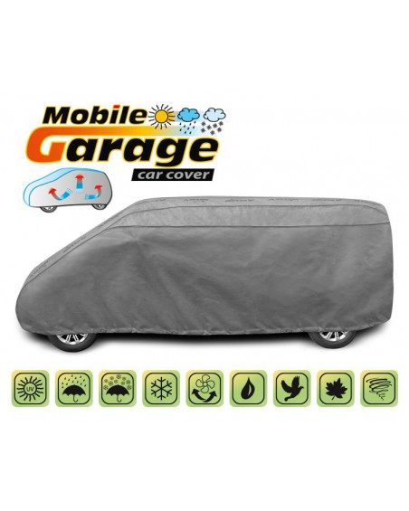 La housse de MOBILE GARAGE de haute qualité est un produit adapté aux besoins des conducteurs. Elle est composée de 4 couches de matériaux épais, solides et durables. La housse protège l'ensemble de la voiture contre les influences néfastes de l'environnement. La housse Mobile Garage est la protection idéale pour votre véhicule tout au long de l'année. Sa fonctionnalité peut être appréciée en toute saison. En hiver, il empêche l'accumulation de neige, de givre et de glace et résiste au gel ; en automne, il protège contre la pluie, le vent, les feuilles, la sève des arbres ; et en été et au printemps, il protège contre les rayons UV, la poussière et les fientes d'oiseaux. Les propriétés particulières du matériau multicouche garantissent que la housse ne se mouille pas, tout en permettant à la vapeur d'eau de s'échapper du dessous de la housse vers l'extérieur. Toute trace d'humidité qui s'accumule sous la bâche s'évapore rapidement, évitant ainsi la rouille de la voiture et la formation de moisissures. La housse convient à une utilisation immédiate ou à long terme. La housse peut être lavée à la main à 40 degrés.