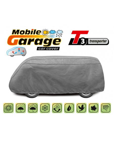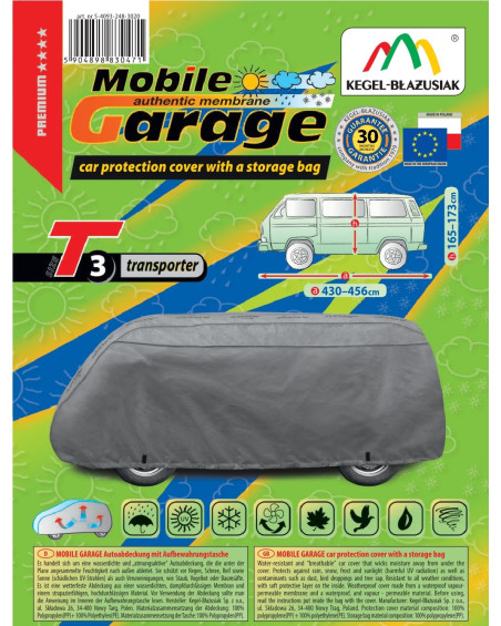La housse de MOBILE GARAGE de haute qualité est un produit adapté aux besoins des conducteurs. Elle est composée de 4 couches de matériaux épais, solides et durables. La housse protège l'ensemble de la voiture contre les influences néfastes de l'environnement. La housse Mobile Garage est la protection idéale pour votre véhicule tout au long de l'année. Sa fonctionnalité peut être appréciée en toute saison. En hiver, il empêche l'accumulation de neige, de givre et de glace et résiste au gel ; en automne, il protège contre la pluie, le vent, les feuilles, la sève des arbres ; et en été et au printemps, il protège contre les rayons UV, la poussière et les fientes d'oiseaux. Les propriétés particulières du matériau multicouche garantissent que la housse ne se mouille pas, tout en permettant à la vapeur d'eau de s'échapper du dessous de la housse vers l'extérieur. Toute trace d'humidité qui s'accumule sous la bâche s'évapore rapidement, évitant ainsi la rouille de la voiture et la formation de moisissures. La housse convient à une utilisation immédiate ou à long terme. La housse peut être lavée à la main à 40 degrés.