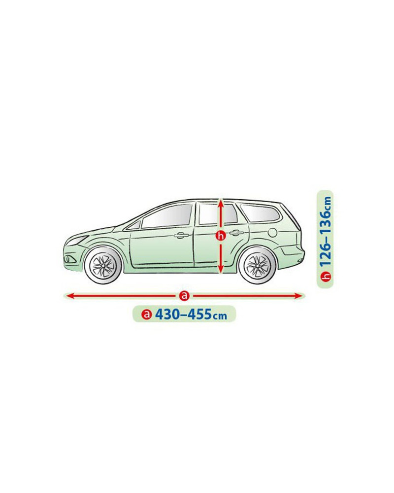 Le matériau textile de la bâche conviendra aussi bien à une voiture légèrement plus petite qu'à une voiture plus grande, de forme et de dimensions similaires, sans dépasser la circonférence indiquée ci-dessus.