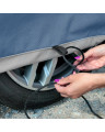 ATTENTION : la housse souillée à l'intérieur ne doit pas être utilisée. La housse doit être utilisée uniquement sur la voiture garée - elle ne peut pas être utilisée lors du transport de la voiture sur une remorque.