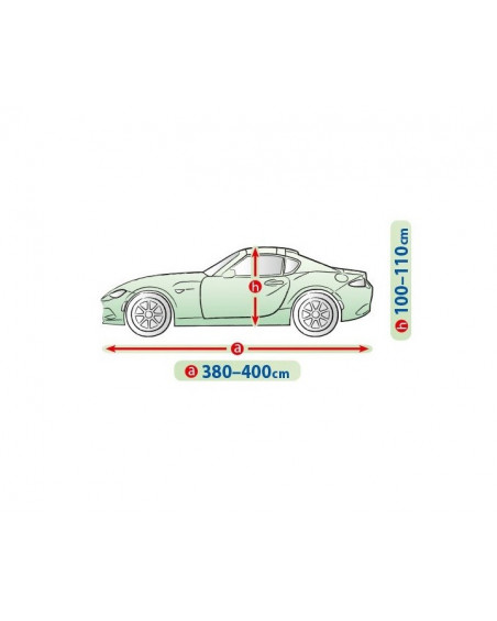 Le matériau textile de la bâche conviendra aussi bien à une voiture légèrement plus petite qu'à une voiture plus grande, de forme et de dimensions similaires, sans dépasser la circonférence indiquée ci-dessus.
