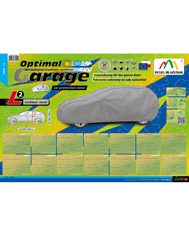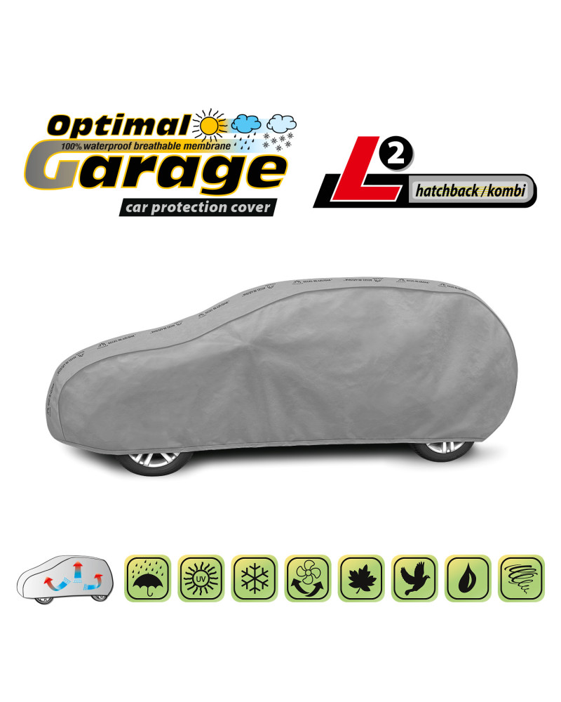 La housse de protection voiture de membrane OPTIMAL GARAGE, imperméable mais en même temps perméable à la vapeur. Housse iImperméable même en cas de forte pluie et en même temps perméable à la vapeur, évacuant l'humidité du dessous de la housse vers l'extérieur. La housse résistante aux intempéries, entièrement composée d'une membrane à très haute perméabilité à la vapeur. Elle protège contre la pluie, la neige, le gel et le rayonnement solaire (rayons UV nocifs) et contre les impuretés telles que la poussière, les fientes d'oiseaux et les sèves d’arbres.