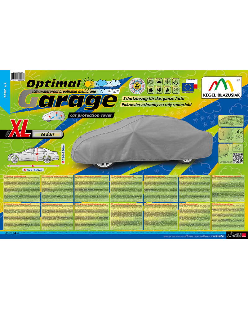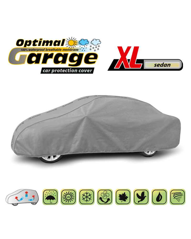 La housse de protection voiture de membrane OPTIMAL GARAGE, imperméable mais en même temps perméable à la vapeur. Housse iImperméable même en cas de forte pluie et en même temps perméable à la vapeur, évacuant l'humidité du dessous de la housse vers l'extérieur. La housse résistante aux intempéries, entièrement composée d'une membrane à très haute perméabilité à la vapeur. Elle protège contre la pluie, la neige, le gel et le rayonnement solaire (rayons UV nocifs) et contre les impuretés telles que la poussière, les fientes d'oiseaux et les sèves d’arbres.