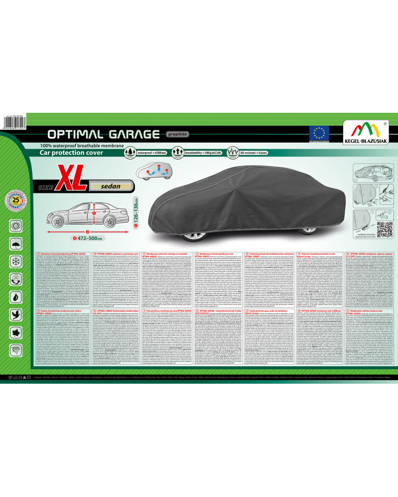 La housse de protection voiture de membrane OPTIMAL GARAGE, imperméable mais en même temps perméable à la vapeur. Housse iImperméable même en cas de forte pluie et en même temps perméable à la vapeur, évacuant l'humidité du dessous de la housse vers l'extérieur. La housse résistante aux intempéries, entièrement composée d'une membrane à très haute perméabilité à la vapeur. Elle protège contre la pluie, la neige, le gel et le rayonnement solaire (rayons UV nocifs) et contre les impuretés telles que la poussière, les fientes d'oiseaux et les sèves d’arbres.